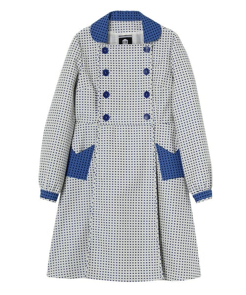 小さなクロスがドット模様の様に広がるジャガードのワンピース。 レトロな配色とシルエットでどこかノスタルジックな雰囲気も。 左右対称に付けられたV字のポケット口もポイント。 フォーマルな素材感で普段使いはもちろん、パンプスやジュエリーと合わせて式典などのオケージョン使いも是非おすすめのアイテムです。