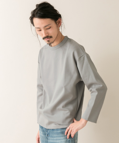 ボンディング加工したようにふくらみのあり、スウェットのように柔らかなコットンポンチ生地でルーズなシルエットに仕上げました。 インナーとしてはもちろん、1枚で着た時もスタイルがキマるドロップショルダーのゆったりフォルム。 この春を象徴するミニマル・ベーシックを感じさせる一枚です。