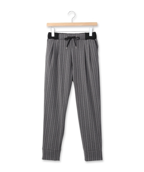 伸縮性のある軽やかな素材にストライプ柄を施したテーパードパンツ。ウエストゴムなので脱ぎ穿きしやすく腰回りも快適です。ベーシックなストライプ柄で使いやすく幅広く活用できるアイテムです。 モデル情報:身長170cm B78W60H86 着用サイズ:02(M) 店舗へのお問い合わせ商品番号:511-68015 主に春に着用いただける商品です。 サイズスペック●製品寸法: 02(M):W~80 H90 股下65 前股上31 渡り幅28 裾幅13 03(L):W~84 H94 股下66 前股上31 渡り幅30 裾幅14