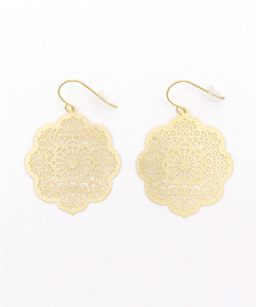 軽くて薄ーい、まるで紙をくりぬいたような小洒落たピアスです。付けていても付けてることを忘れてしまうくらい楽に付けていられます。こんなに軽くて薄いのに存在感はピカイチ。