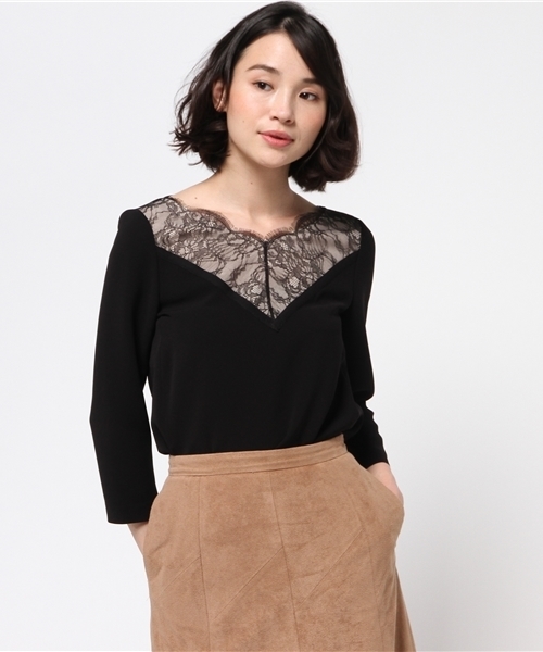 繊細なレースを胸元に施したエレガントなブラウス。デコルテを綺麗に見せてくれる計算されたレースカッティングにこだわりました。バックファスナーで簡単な着脱、手洗い可能でデイリーユースを考えつつ、高級感のある見栄えは毎日のオシャレに重宝致します。