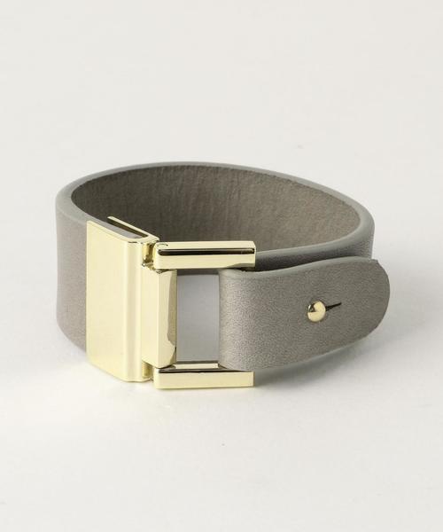 今シーズントレンドのレザーブレスレット。 太めで存在感のあるベルトにゴールドカラーのバックルを施した、マニッシュなデザインが◎。 お持ちのブレスレットとの重ね付けもおすすめです。 ■ブラック・ライトグレー・ベージュはスムース、ブラウン・ダークブラウンはスエード素材です 店舗にお問い合わせの際は、全国のグリーンレーベル リラクシング各店まで下記の品番をお申し付け下さい。 品番:3633-699-1454