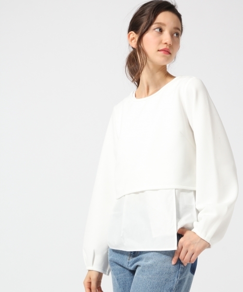 2枚セットのレイヤードスタイルが楽しめるアイテム。 伸縮性のある綺麗めなポンチ生地を使ったプルオーバーと、ノースリーブのぺプラムタンクがセットになっています。 セットで合わせる事で簡単にモードテイストに合わせる事が出来ます。 袖口はタックデザインになるので、立体的な見え方に。 またタンク部分は深いタックとスリットのデザインを入れる事でアクセントにしています。