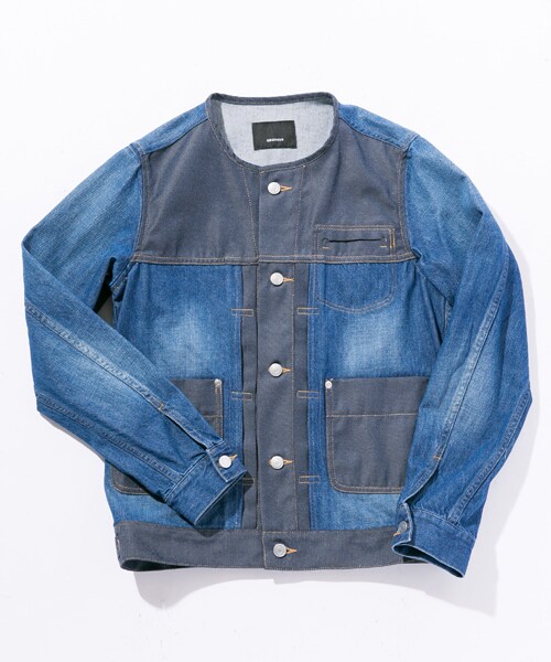 春夏トレンドのデニムをブランド流の解釈で仕上げた一着です。随所に切替を施し、まるで再構築したかのようなGジャンです。通常制作されることの多い3rd型ではなく、敢えて2nd型モチーフで仕上げているのも特徴です。また、ノーカラーによりGジャン独特の男臭さを払拭して着て頂けますので、ロングシャツやタートルネック、スラックス等のドレスアイテムとの合わせもオススメです。このアイテム〈16SM-BL02〉のサックスはこちら08sircus〈ゼロハチサーカス〉のアイテム一覧はこちら