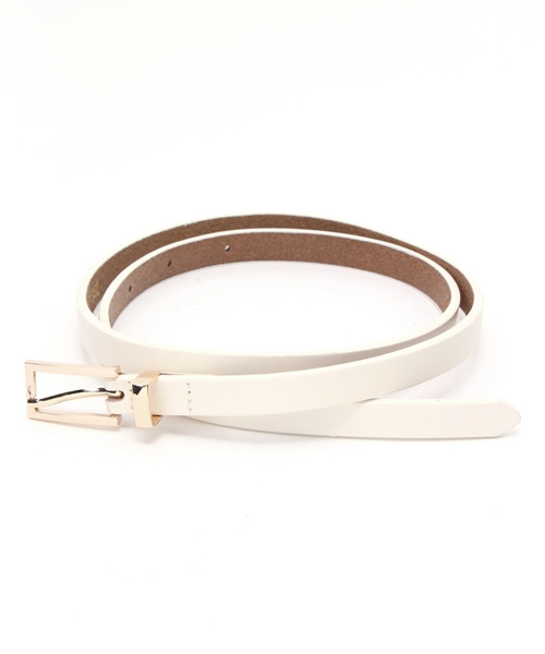 女性らしい華奢さをアピールするレザースレンダー細ベルト!スクエアバックルが大人顔に見立ててくれ、ゴールド金具がリッチ感を添えてくれます。シーズンレスで使えるシリーズは、1本揃えておくと便利なアイテム。