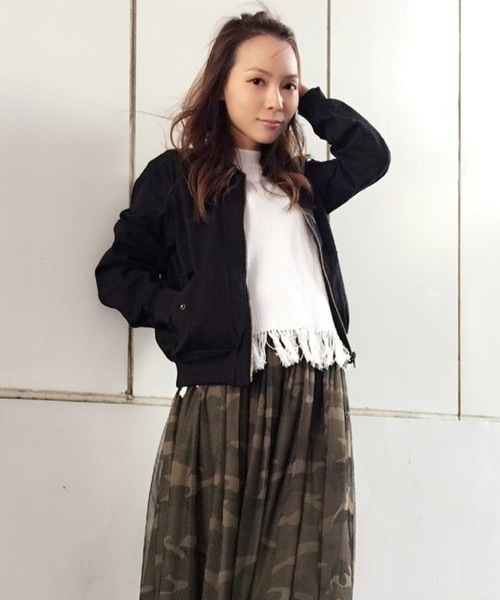 ミリタリーアウターの定番MA-1は今季マストなアイテム。人気のシルエットはそのままに、これからの季節にぴったりな軽やかな風合いで登場。メンズライクなシルエットがGOODなMA-1ブルゾンは、ワンピースなどとコーデする甘辛MIXもオススメ。定番アイテムは何枚あっても重宝すること間違いなし。着丈が短めで身頃幅をやや太めにしているので、ハイウエストのボトムスやワンピースとの相性も抜群です。程良いUSED感があり、こなれ感を演出してくれます。・ポケットあり・裏地なし・リブ伸縮性あり