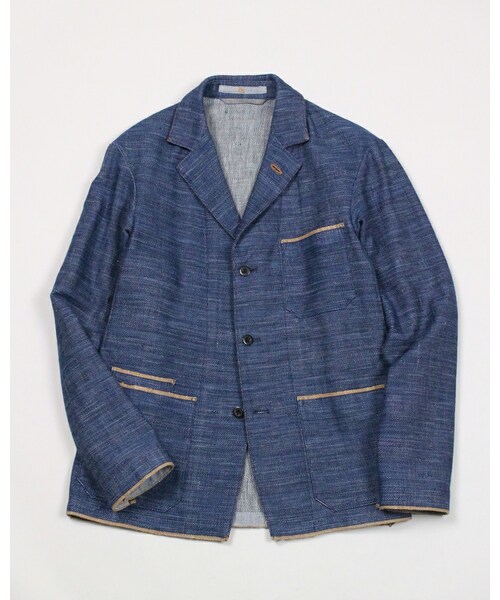45Rの定番素材のカディで、なんとデニムジャケットをつくりました。インドの天然藍で染めた手紡ぎ手織りのカディを使用したハンドメイドデニム。手織りのカディなので、デニムといっても硬くて丈夫といった生地ではなく、やわらかで肌触りが良い生地感です。ムラのある藍染糸は、なんとも味わいのある表情。どのような色落ちをしていくのかも楽しみですね。ボタンホールや各所のステッチは、あえてハンドメイドらしさの溢れる見え方に仕上げています。ポケット口や裾にはセルビッチを使用、内ポケットには手刺繍で施した”hand made denim”の文字と、細かな部分にもこだわり抜いたスペシャルなアイテムです。