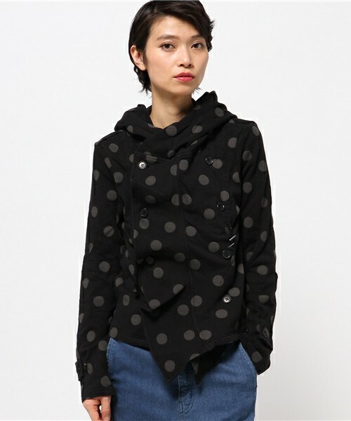 直営店限定gomme Sシリーズ「gomme s=ゴム エス」とは gommeが何シーズンも継続してきた定番アイテム。 デザイン、 品質はそのままに低価格を実現したシリーズです。 フロントにフリルを寄せたデザインパーカーです。 コードが付いているので、フリルの分量をお好みで調節が出来ます。 ボタンを開いた時も綺麗なシルエットが出るように考えられたパターンです。 綿100%の裏毛で、自宅で洗濯が可能なので普段から沢山着られます。