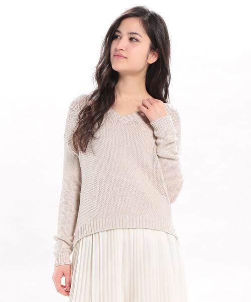 後ろ下がりのシルエットがスタイリングのキーポイント。ほどよくルーズなトップスは押さえておきたいトレンドアイテム。 くしゅくしゅっとした長めの袖で、ほどよいルーズ感をかもしだすカノコ編みトップス。 着るだけでこなれ感のある旬なコーディネートを完成させてくれます。 絶妙な開きのVネックラインが、すっきりとした印象に。フロントはコンパクトな丈感で、後ろ下がりのシルエットなので、どんなボトムでもバランスよく着こなせます。