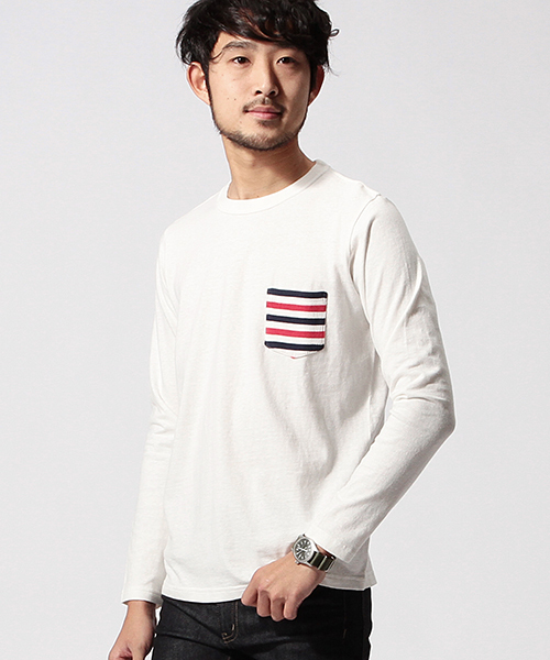一枚あると便利なロンTEEです! ポケットの切り替えしがさり気ないアクセントになった、トップス、インナーとして使い勝手の良いロングスリーブのカットソーです。これからの季節はきっと重宝する一着なので押さえておいていただくのがオススメです。