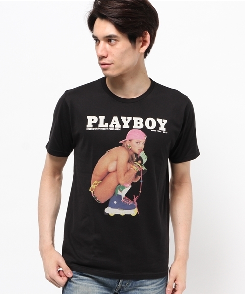 『セクシーかつハイセンスなビジュアルにより、一枚でもキマる』 米国誌『プレイボーイ』をパートナーに迎えた、エロティックかつキュート、それでいてクールなコレクションは、今季も快進撃を続ける。 こちらでは1991年4月号の表紙であり、また「スポーティガールズ」を特集した2014年10月刊行のスペシャル コレクターズ エディションの表紙も飾った名ビジュアルをアレンジ。また背中にもプリントを配して、バックスタイルまで隙なしの一枚に。モデルは1991年4月のプレイメイト オブ ザ マンス、ジュリー・クラーク。 プレミアム素材、スーピマコットンのオリジナルボディも自慢 ボディには、柔らかくドライな肌触りと落ち着いた光沢、そして優れた発色性を魅力とするアメリカ産の高級超長綿、スーピマコットンを使用。目を詰めてミドルウェイトで編み立てた、ブランド定番の天竺生地です。 PLAYBOY 1953年、ヒュー・ヘフナーによって創刊されたアメリカの男性誌『プレイボーイ』。デザイナー北村信彦にとって、ボウタイを結んだウサギのモチーフ「ラビットヘッド」や、同性でも思わず憧れるほどセクシーでハイセンスなプレイメイトたちのヌードグラビアは、HYSTERIC GLAMOURの世界観を創造する過程で多大なインスピレーションを受けたひとつ。雑誌の60周年を記念し、2013年に始動したコラボレーションレーベルでは、そうしたアイコンやアーカイブ写真の使用許可を特別に得て、世にあるライセンス品とは一線を画すファッショナブルで魅惑的なアイテムを発表している。