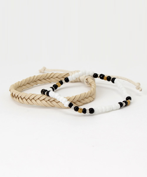 ★異素材の2連ブレスレット★合成皮革とビーズを組み合わせた2連デザイン。それぞれ別々につけることも可能で、スタイルや気分によってアレンジがききます。