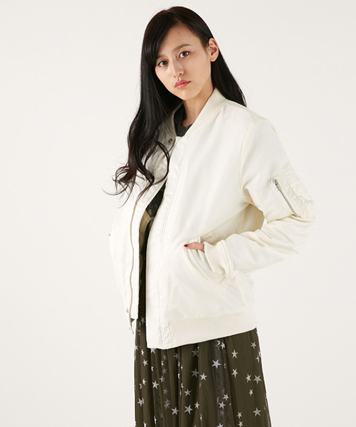 スタンダードなMA1ブルゾン☆グッドバランスな着丈なのでハイウエストのボトムやワンピースの羽織物として重宝するアイテムです!通年使える羽織物として幅広い世代に人気の一着です。
