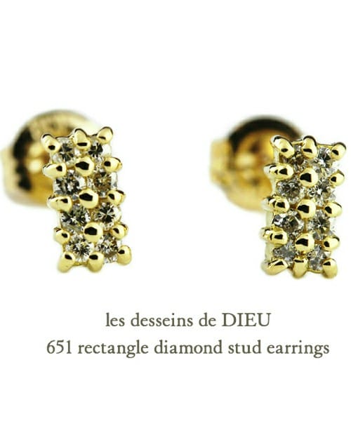 「 Rectangle Diamond 」 スッキリとしたシルエットの縦型 華奢ピアス 8石のダイヤモンドが輝くシンプルな ダイヤモンド ピアスです。 シャープな形でありながらも 華奢な小さめサイズのピアスは デイリー付けにお薦めのさり気ないピアスです。
