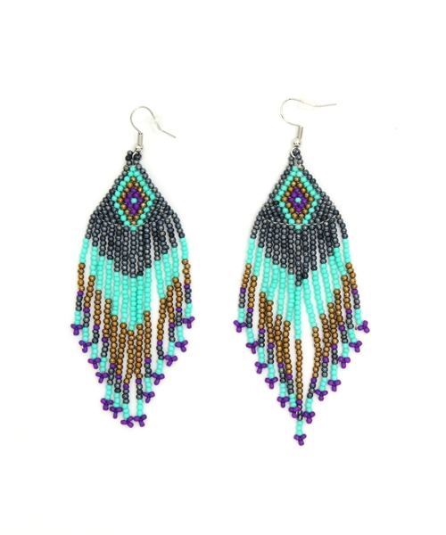 WHO'S WHO gallery(フーズフーギャラリー) 色使いが鮮やかな、エスニック風ビーズピアス。 タッセル状ビーズが存在感抜群のデザインです。 揺れるシルエットが女性らしく、顔回りを華やかにみせてくれます。 大人っぽいデザインなので、スタイリングのアクセントにおススメ。 シンプルなコーデやカジュアルコーデ、もちろんエスニック風コーデにもピッタリなアイテムです。