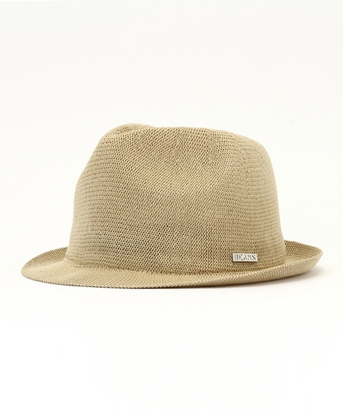 清涼感のあるシンプルデザイン 熱で固まるサーモ糸を混ぜたハットは型崩れを起こしにくいのも特徴です。シンプルなデザインは色々なコーディネートに合わせやすく、アクセントのゴールドプレートが高級な印象を与えます。