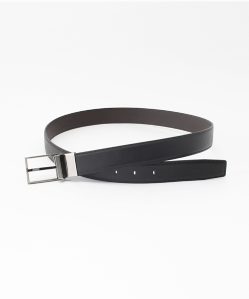ビジネスモデルのCalvin Klein定番のリバーシブルベルトになります。レザー部分は傷がつきにくい、型押しを施したプリズムレザーを使い、ブラックとブラウンのリバーシブルと新色でブラックとグレーのリバーシブルのベルトを展開しております