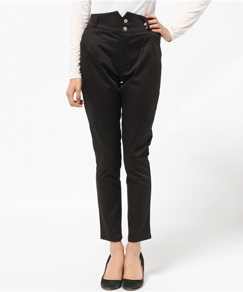 Discoat Parisien(ディスコートパリシアン) ◇XSサイズ展開追加、プライスチェンジ◇ 今年らしいテーパードラインがかっこいいHWカラースキニーパンツです。ハイウエストタイプで足長効果が期待できます。きらりと光るシルバーのドットボタンがいいアクセントに。タック入りなので、腰回りも気にせずおしゃれを楽しめます。トップスをインしたコーデがすっきりとまとまっておすすめです。
