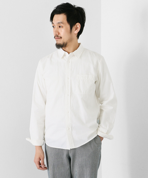 「FORK&SPOON」の定番シャツ「ベーシックシャツ」。 その名の通りスタンダードなデザインで、オールシーズンお召いただけるよう平織りのライトな生地を使用しています。 オーガニックコットンを使用しているため、洗いこむ毎にやらわかな風合いが増していきます。 今シーズンからパターンを変え、よりリラックスした着心地でお召いただけます。 同ブランドのコンセプトである"毎日大切に着てほしい"1着です。