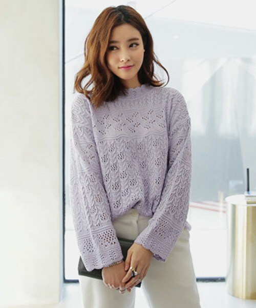 透かし編みとスカラップのハイネックがかわいいプルオーバーは、しぼりがなくふわっと自然に落ちるシルエットが女性らしいです。 ※WEARに記載してある金額と、DHOLIC通販サイトに記載してある金額にシステム都合上、稀に誤差が生じます。正しい金額はDHOLIC通販サイトに記載された金額です。