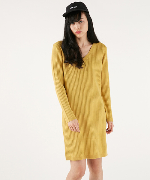 鎖骨見せのVネックが女らしいすっきりとした肌見せを叶えるニットワンピース。メリハリの効いたシルエットのため、大人なカジュアル感で着こなせるのが魅力。無駄のないプレーンなデザインなので、アクセサリーで自分らしくアレンジを効かせてもGOOD☆