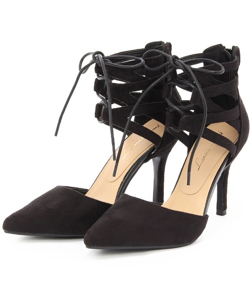 トレンドのレースアップパンプスです。足元をほっそり、綺麗に見せてくれる今シーズンイチオシのアイテムです。スタイリングに+するだけで、コーデがワンランクアップ。華奢で繊細なルックスですが、履き心地も良いのが自慢。後ろファスナーで脱ぎ履きも簡単です。カジュアルスタイルに合わせると、洗練された雰囲気に。