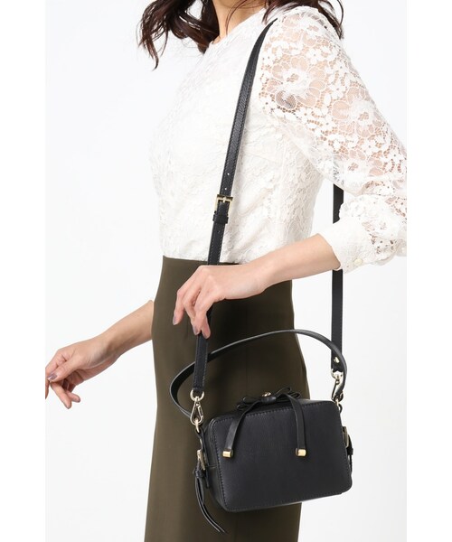 小振りのポシェットのトップには、フェミニンなリボンが付いた可愛い印象のバッグ。手持ちとショルダーの2WAYタイプなので、シーンによって使い分けができます。辛目のコーディネートに甘さを加えたりと、はずし小物としても可愛いですね。