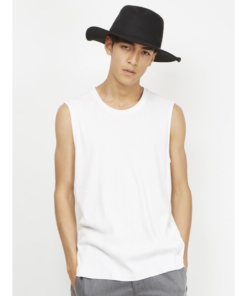 ■ノースリーブカットソーです。着丈を長めに設定し、インナーとして着用した際にアクセントになるアイテムです。肌触り抜群の着心地も特徴で、日々のコーディネートに取り入れてほしい商品です。