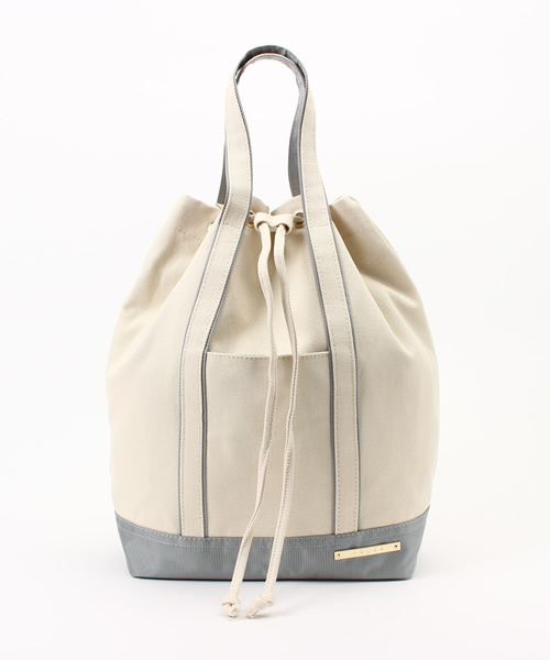 トートバッグを巾着型のリュックにアレンジしたような今年らしいデザイン♪ ハンドル付きで手持ちもできる人気の形です。 厚手の帆布生地は耐久性がありデイリーにしっかり活躍。 パーツは全てゴールドでまとめ、カジュアルな中に上品な要素を加えています。