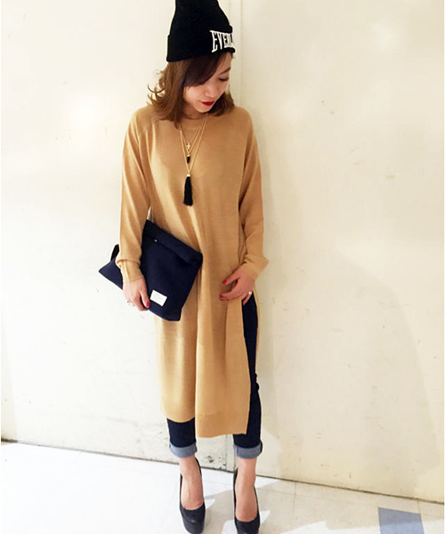 ざっくり大胆に入ったサイドスリットにご注目!! シンプルなワンピースながら、シルエットに変化を出したちょっぴりセクシーなデザインです。 パンツとコーディネートする着こなしもおすすめですよ♪