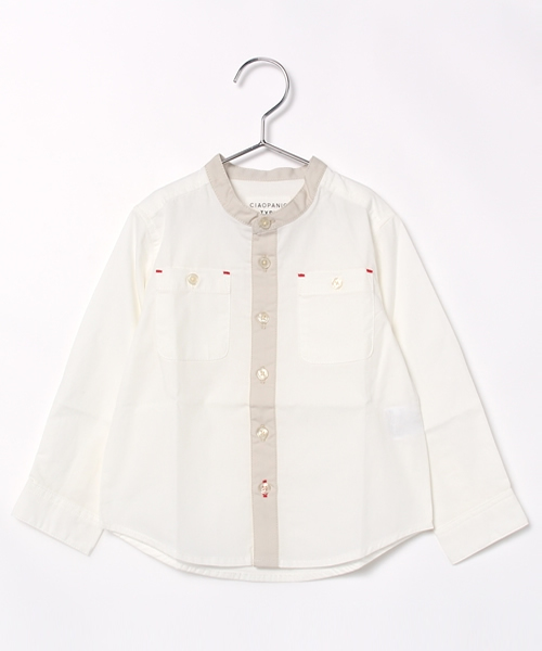 CIAOPANIC TYPY(チャオパニックティピー) オールシーズンで使えるバンドカラーシャツ *サイズ展開目安:95(90~100).105(100~110).115(110~120).125(120~130).135(130~140) *さわやかなホワイトとストライプ展開が清潔感ある1枚