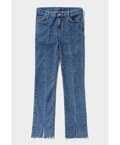 裾のフロントのカッティングがオシャレな デニムパンツをご紹介いたします。 伸縮性があり、フィット感も良く 足をキレイに見せてくれるパンツです。 フロントの裾部分がポイントです。 チラッと素足が見えるのが素敵ですよね! クロップド丈で今年っぽさもありますし、 スタイリッシュに着まわせそうなデニムです。 ◆COLOR : ブルー ◆SIZE : S,M,L ◆モデル着用SIZE : ブルー/S