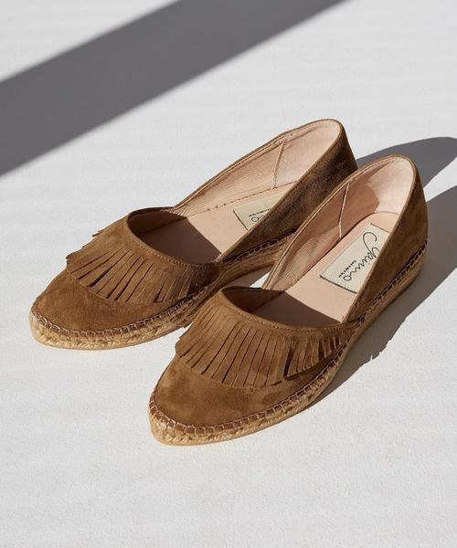 『Gaimo(ガイモ)』は1978年にスペインで誕生したブランド。 ハンドメイドのエスパドリーユが人気で、歩きやすさ&お手ごろプライスもポイントです! 春夏のコーディネートに欠かせないウェッジソールのシューズをご用意しました。 アッパーのフリンジデザインが今季らしいアクセントに。 この春夏も引き続き注目のポインテッドトゥデザインもポイント。 上品なカラーのスエード素材が大人カジュアルの足元に最適です! ※こちらはインポート商品になりますので、cm表記には若干の誤差がございます。ご了承下さいませ。 ※画像の商品はサンプルです。 実際の商品と仕様、加工、サイズが若干異なる場合がございます。 ~セール期間中のグリーンレーベル リラクシング各店への在庫のお問い合わせに関して~ セール期間中、セール品の在庫の有無に関して店舗ではお答えできない場合がございます。 また、セール期間中の店舗でのセール品のお取り置きはお受けいたしておりません。予めご了承下さい。 品番:3531-399-0447