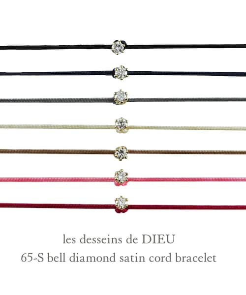 幸せを運ぶ「ベルダイアブレスレット」 レデッサンドゥデュー定番の、一粒Diamondと同じ6本爪のシャトンを使用した、綺麗なカラーバリエーションのサテン紐ブレスレット 0.05カラットの一粒ダイヤモンドがベルのように見えてとってもキュート♪ カラーは7色からお選びください ブラック、ネイビー、グレー、オフホワイト、モカブラウン、ホットピンク、レッド 18金イエローゴールド製