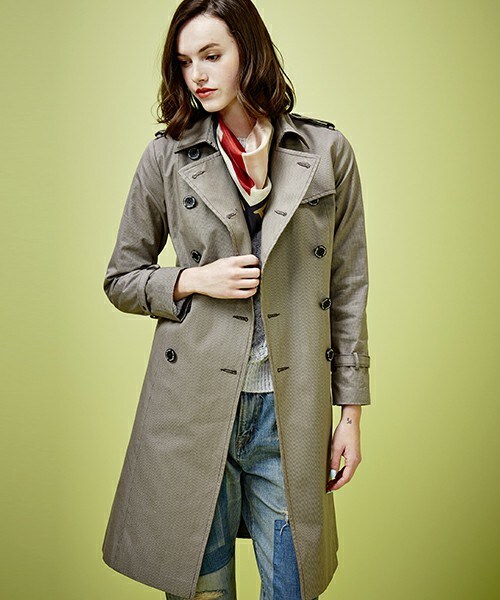 バーバリー素材を使用した本格的なトレンチコート。 スタンダードなベージュと、ブラウンベースの細かい千鳥柄の2柄。 表面には撥水加工をしておりますので、雨の日も着て頂けます。 元々のミリタリーとしてのトレンチコートをベースにしたデザインと、裏地には70'sを思わせるペイズリー柄。 前を開けて着た際にもキレイなシルエットで着て頂けるよう、身頃をスッキリとさせています。 パリっとした素材感なので柔らかい、ルーズなジーンズとの合わせもおすすめです。