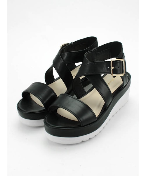 足を包み込むベルテッドデザインのプラットフォームサンダル。