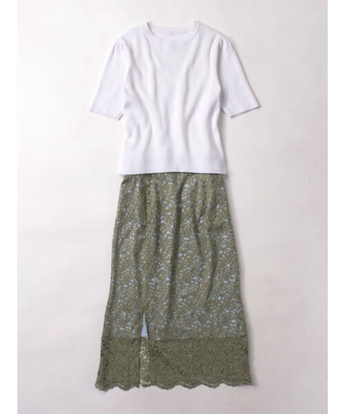 コンパクトなニット×レーススカートを組み合わせたセットワンピース☆