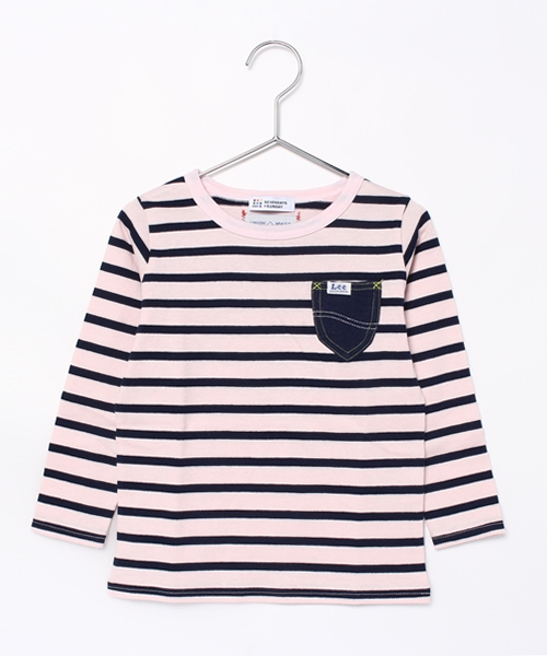 『Lee』のマルチボーダー長袖Tシャツ。しっかりとした厚手のカットソー素材を使用しているので、型崩れしにくく、長くご愛用していただけるアイテムです。ボーダー柄がカジュアルな印象。左胸のデニム風デザインのポケットが特徴的な仕上がりです。