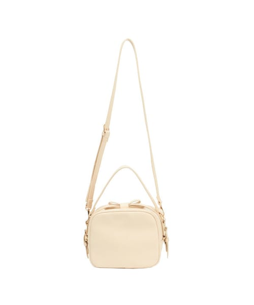 トップにあしらわれたリボンがとびきりキュートなマイクロバッグ。 小ぶりなサイジングは気軽に持てておしゃれ度抜群の仕上がりです。 ハンドルで持てばエレガントに、肩にかければカジュアルにと2WAYで楽しめる一品。 MATERIAL:合成皮革 made in China サイズ高さ幅 マチ 持ち手ショルダー F17.5cm21cm12cm40cm107〜117cm