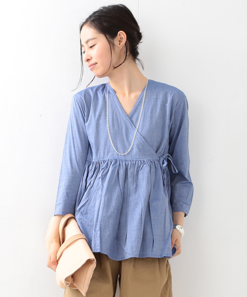 細番手のコットン生地が上品さを醸し出す女性らしいブラウス。胸元の高い位置で切替しになっているのでスタイルアップしたコーディネートをお楽しみいただけます。ボトムスには細身なパンツからワイドパンツと幅広く対応できる優れもの。シーンに合わせたコーディネートをお楽しみください。