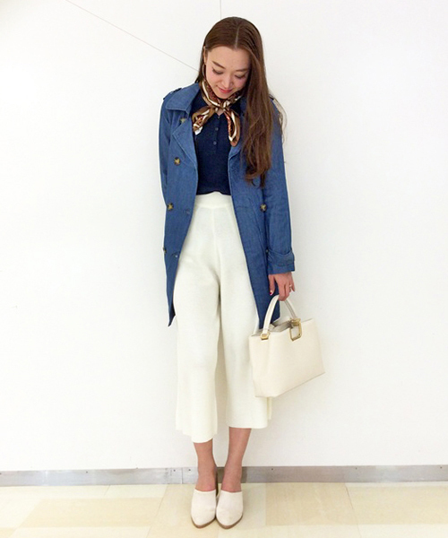 季節の変わり目に着るアウターとして重宝するトレンチコート! 今年のトレンドキーワードでもあるデニムを生地に採用しました☆ 落ち感のあるレーヨン混の素材がきれいなシルエットを作ってくれますよ!
