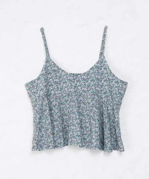 繊細なフラワープリントが愛らしいキャミソールです。ヨーク切り替えからたっぷりとフレアさせたシルエット&ショート丈がポイントになっています。シンプルなカットソーやタンクトップなどに重ねて、レイヤードコーデのアクセントとして活躍させたいアイテムです。