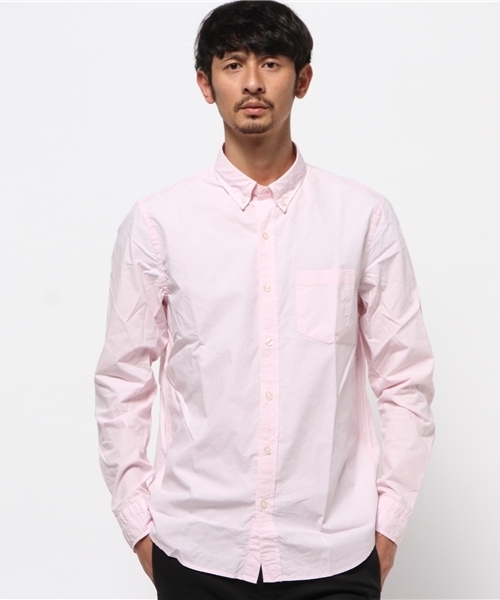 CIAOPANIC TYPY(チャオパニックティピー) タイプライターのシャリ感ある素材が、カジュアルすぎない印象のボタンダウンシャツ *適度なハリとシャリ感が特徴のタイプライターを使用しています。 *通常のオックスなどと比べて、高密度の素材が、上品に着ていただけます。 *1枚でも様になりますが、かさばりにくい素材感がニットなどの重ね着にも適しています。
