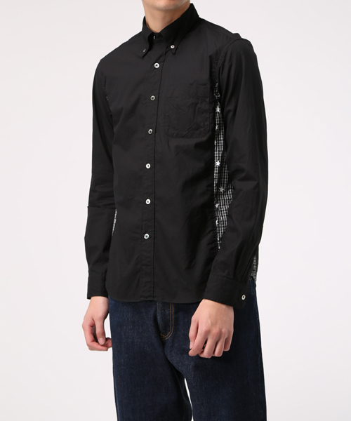大小様々なスターとUEサークルロゴを散りばめたブロードチェック地でサイドパネルを切り替えたB.Dシャツ。遊びのきいたアプローチながらモノトーンでまとめることによって、シックな仕上がりに。