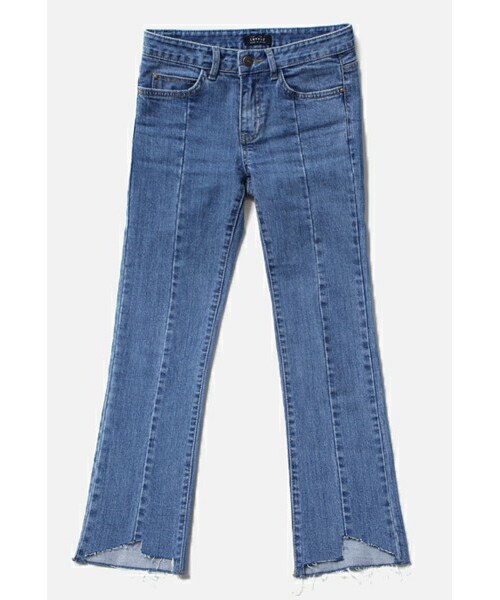 フロントの切り替えがオシャレな デニムパンツをご紹介いたします。 切り替えにより縦長ラインが強調されるので、 足をまっすぐ&長く見せてくれますよ! 裾は切りっぱなしになっており、 ワイルド&クールな感じ♪ トレンドのアンクル丈もオシャレですよね! カジュアルなコーデにオススメのデニムです。 ◆COLOR : ブルー ◆SIZE : S,M,L ◆モデル着用SIZE : ブルー/S