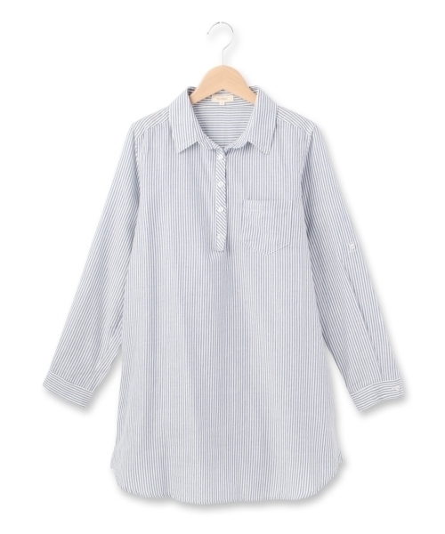 スキッパーデザインでスポーティーに仕上げたシャツワンピです。ゆるやかなAラインシルエットと後ろ長めの丈感でフェミニンなテイストをプラスしました。袖をロールアップできるので夏も着まわせます。 モデル情報:身長164cm B78 W60 H84 着用サイズ:02(M) 店舗へのお問い合わせ商品番号:511-58007 主に春に着用いただける商品です。 サイズスペック●製品寸法: 02(M):着丈83 B95 袖丈58 肩幅37 W104 H110 03(L):着丈84 B98 袖丈59 肩幅38 W108 H114