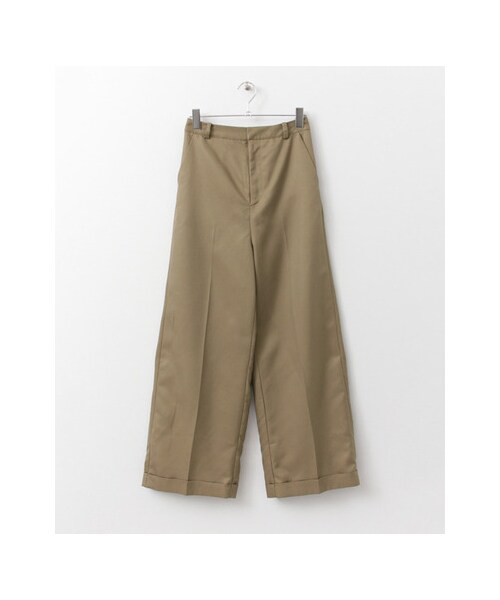 ストレートシルエットが魅力のシンプルなワイドパンツが登場。シーズンレスで使えるベーシックアイテムはデイリーに活躍する事間違いなし!!ウエストにはゴムが施されているのでラクに穿けるのも嬉しいですね◎センタープレスや裾の折り返しが大人っぽい。Tシャツや薄手のニットをサラッと合わせてメンズライクなコーデに仕上げるのがオススメ。