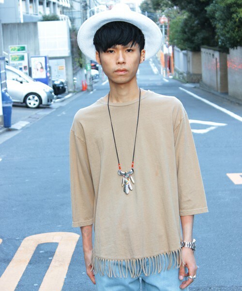 ユニオンステーション×坂口 健太郎 春のスマートベーシック メンズノンノ 5月号 P116掲載商品(ホワイト) 今注目高まるフリンジ付きアイテム。 フリンジが付くことによって印象的なイメージに。 一枚はもちろん、インナーで使ってもインナー栄えしますので是非一着いかかですか。