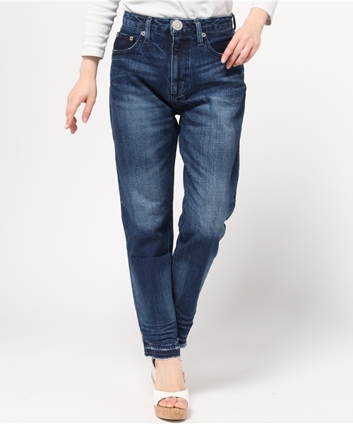 裾にほつれデザインを施したボーイズデニム。ロールアップせずに、裾をPointにした履きこなしを。