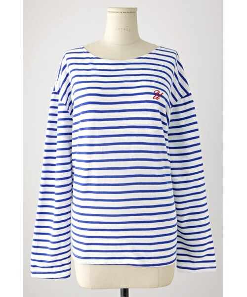 ポイント刺繍が入ったオシャレな ボーダーTをご紹介いたします。 ブルーのボーダーに入った レッドのワンポイント刺繍が素敵! 後ろの英文字ロゴもポイントです♪ 後ろ姿もスタイリッシュに見えますよ。 ドロップショルダーなのもオシャレですよね。 長さも程よくてコーデしやすいアイテムです。 ◆COLOR : ブルー ◆SIZE : FREE ◆モデル着用SIZE :ブルー/FREE